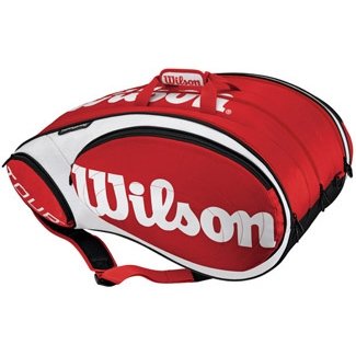 Designed for Wilson's pro players this bag is ideal for serious players of every level. Featuring Wilson's bag technologies (ThermoGuard, MoistureGuard) with abundant compartments and pockets to carry everything competitive players need on court. PVC free. Color: Red/White/Black. Dimensions: 30.25L" x 20W" x 13.75H"