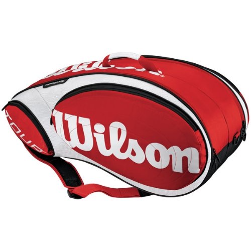 Designed for Wilson's pro players this bag is ideal for serious players of every level. Featuring Wilson's bag technologies (ThermoGuard, MoistureGuard) with abundant compartments and pockets to carry everything competitive players need on court. PVC free. Color: Red/White/Black. Dimensions: 30.25L" x 14.25W" x 13.75H"